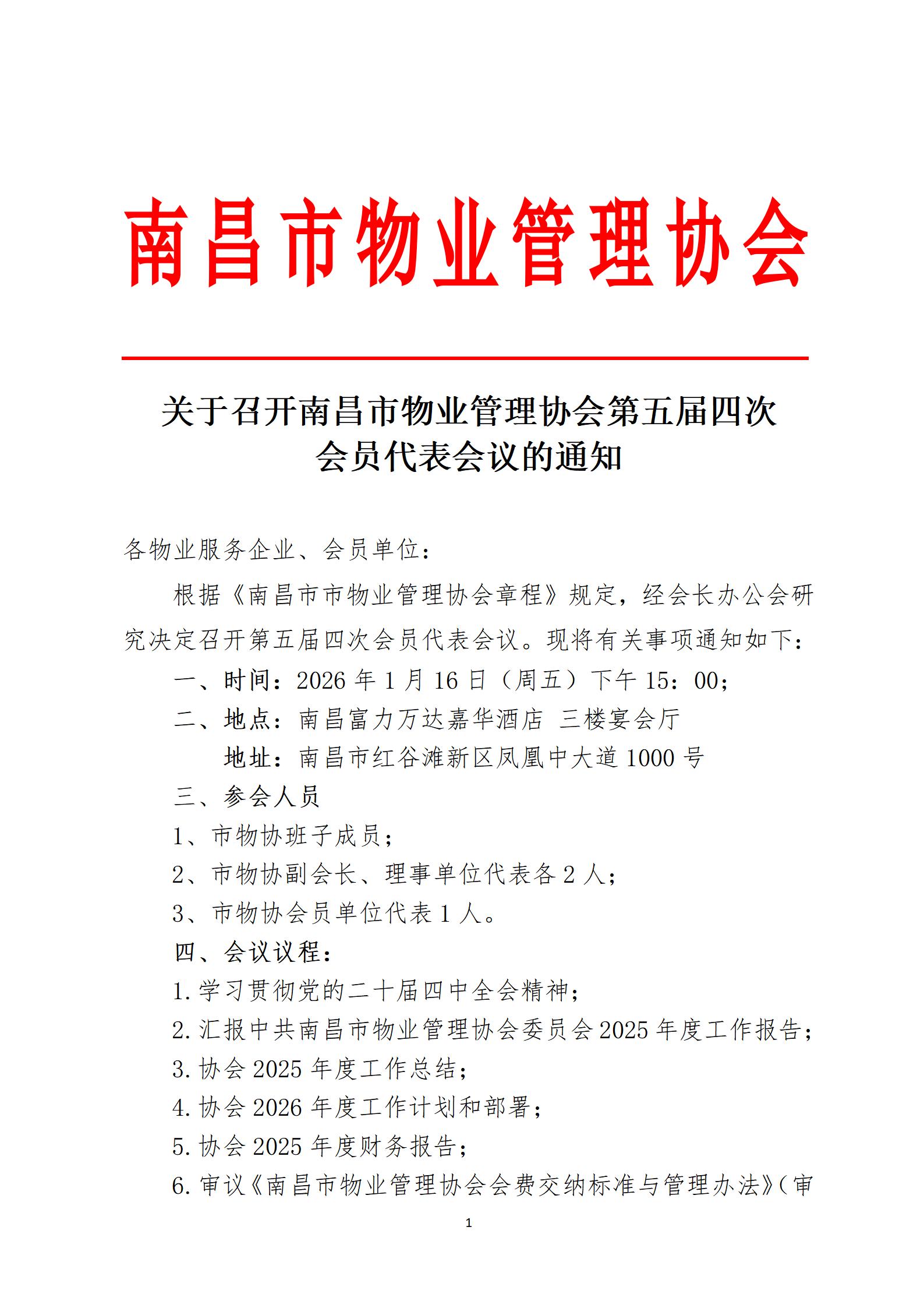 关于召开南昌市物业管理协会第五届四次会员代表会议的通知